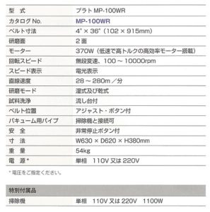 ベルト粗研磨機 プラトMP-100WR